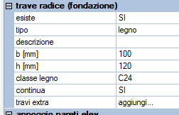 trave radice In questa sezione è possibile gestire le caratteristiche di eventuale trave radice in fondazione, in legno o acciaio: legno