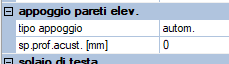 ulteriori parametri nella sezione geometria parete Ulteriori parametri presenti in questo gruppo dati sono: - indicazione dell'appoggio da assegnare di default alle pareti a cui è associata la parete tipo(vedi 3.2 appoggio) - spessore profilo acustico di default |