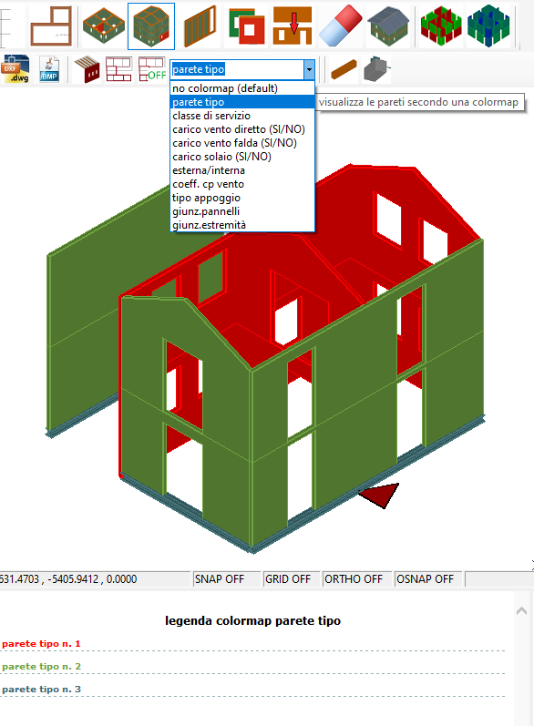 CONNESSIONI PARETI XLAMOpzioni visualizzazione 5. Colormap pareti Dalla toolbar della visualizzazione 3D è possibile scegliere tra le opzioni di rappresentazione delle caratteristiche delle pareti mediante colormap Con il clip XY ON/OFF si può selezionare a video solo una porzione di struttura da rappresentare