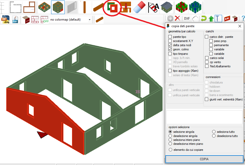 2. selezionare la parete da cui copiare i dati (sarĂ evidenziata in marrone chiaro)