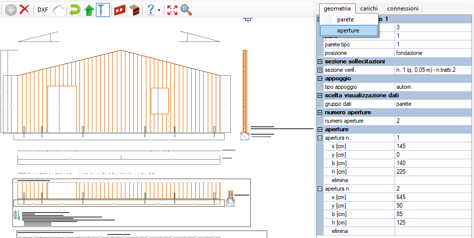 Possono essere gestite per ogni parete dal menu geometria -> aperture.