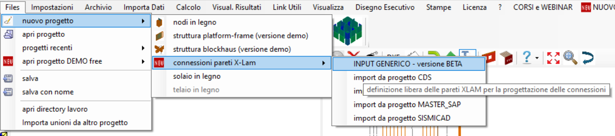 Con questa modalità viene creato manualmente un modello 3D della struttura a pareti Xlam e, assegnate le sollecitazioni, verrà effettuata la verifica delle connessioni.