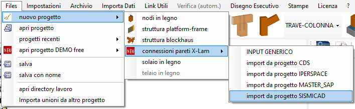 Per importare un modello calcolato occorre creare un nuovo progetto di questo tipo dal menu principale:  |