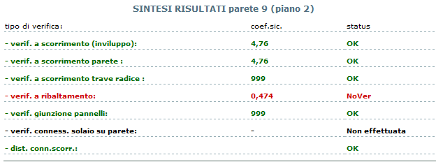 La verifica delle connessioni viene eseguita in automatico ad ogni modifica dei dati della parete o della parete tipo. Nel report a video รจ presente una sintesi dei risultati con evidenziate le verifiche non soddisfatte. |