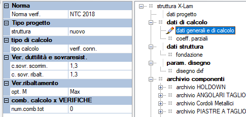 | - Normativa di riferimento - tipo progetto: nuovo o esistente - tipo calcolo: attualmente è disponibile solo l'opzione verifica connessioni -duttilità e sovraresistenza: coeff. di sovraresistenza a scorrimento e ribaltamento