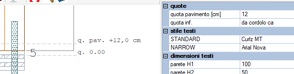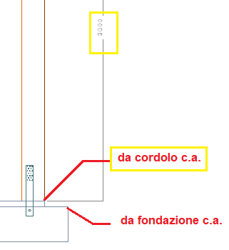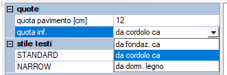 - quota inferiore: offre diverse opzioni per la quotatura delle altezze delle pareti e aperture, facendo riferimento alla quota di spiccato fondazione (priva dell'eventuale cordoletto), all'estradosso di eventuale cordoletto o al dormiente/trave radice in legno