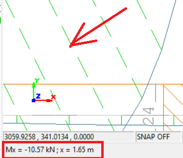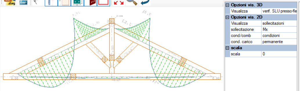 Note: cliccando su una corda del diagramma saranno visualizzati i valori della sollecitazione e della progressiva: