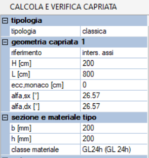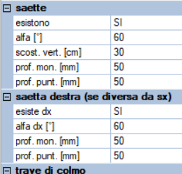 Seguono dei parametri relativi ai singoli elementi della capriata: