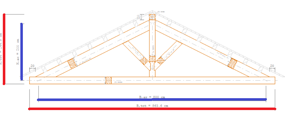 - Rx : inclinazione della trave di colmo |