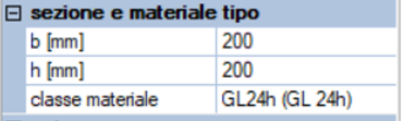 sono le caratteristiche di default delle membrature in legno. A ogni elemento possono essere attribuiti valori diversi, ma modificando uno di questi valori tipo verranno automaticamente assegnati a tutte le membrature, evitando così di dover eseguire l'operazione su tutte le travi. |