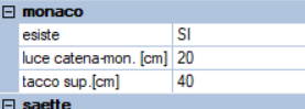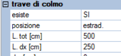 - esiste : indica se è presente la trave di colmo (singola o doppia) - posizione : può essere disposto lateralmente al monaco o sull'estradosso