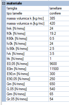materiale caratteristiche del materiale in base alla classe assegnata |