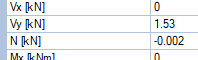 Sollecitazioni al nodoIn questa sezione sono riportate le sollecitazioni all'appoggio indicato nella sezione geometria e carichi