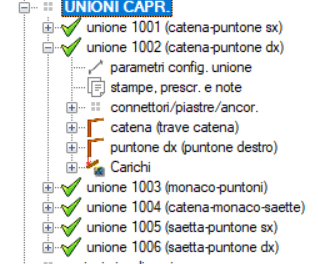Le unioni generate possono essere richiamate e gestite dal menu a destra. Rispetto al modulo UNIONI sono presenti solo le voci utili alla progettazione della capriata. |