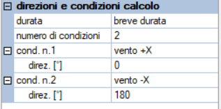 direzioni e condizioni di calcoloandranno qui indicati: durata : delle condizioni di carico vento numero di condizioni del carico vento, da definire successivamente con descrizione e direzione  |