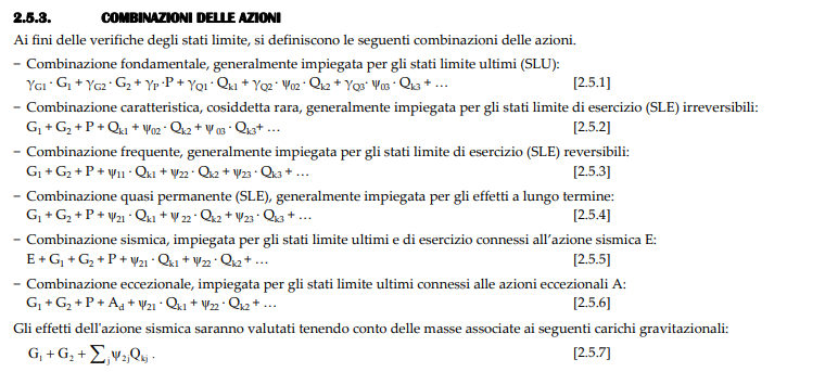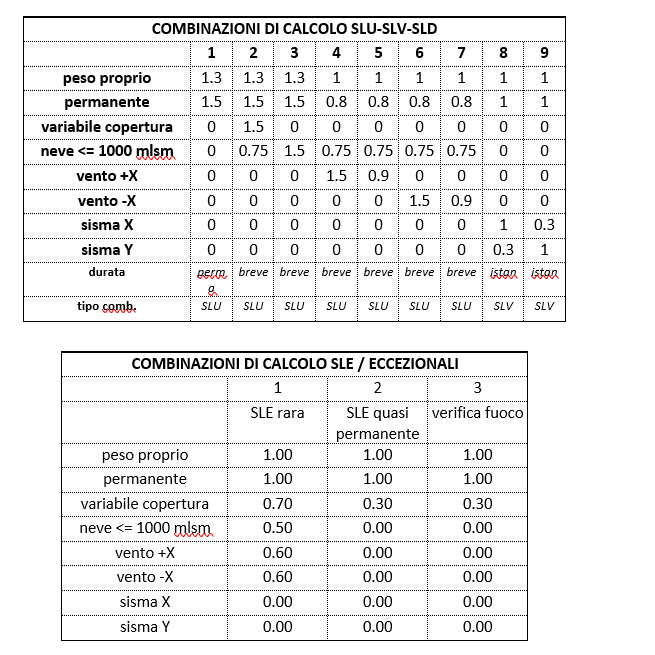 combinazioni di calcolo SLE e FUOCO