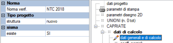 Norma verif. : scelta della normativa di riferimento struttura : tipo di progetto, nuovo/esistente sisma: esiste: consente di tener conto o meno del sisma nel calcolo della capriata  |