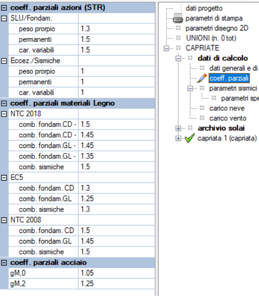 Sono quii gestiti i coeff.parziali di sicurezza dei materiali nelle varie combinazioni di calcolo e Norme: