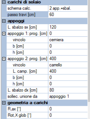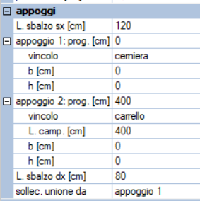 APPOGGI queste opzioni sono presenti nel caso di schema a 2/3 appoggi + sbalzi