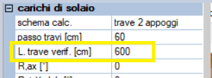 - L. trave verif. lunghezza della trave da considerare ai fini della verifica. Opzione presente solo negli schemi "mensola" e "trave su 2 appoggi". |