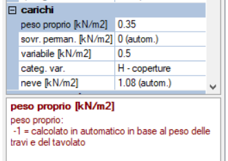 Per utilizzare in automatico i carichi così calcolati basta assegnare il valore -1 al carico permanente e/o peso proprio del solaio.