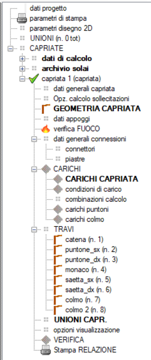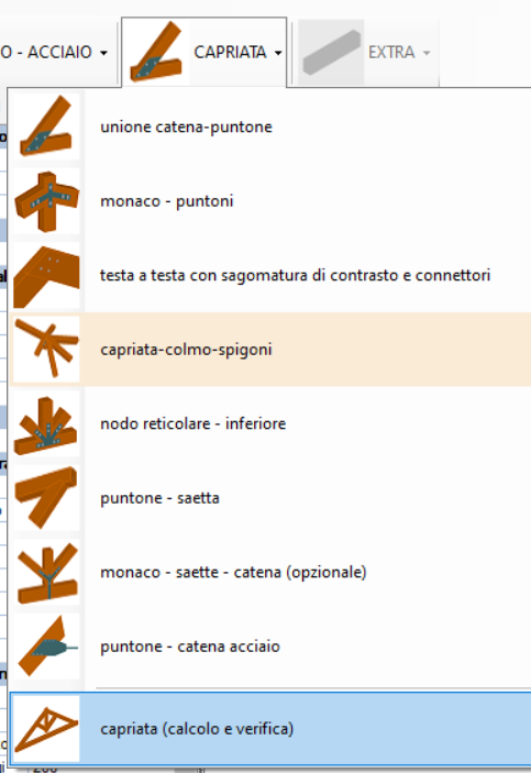 Per inserire nel progetto la verifica di una capriata basta selezionare l'opzione dal menu CAPRIATA  |