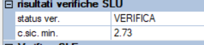 sono riportati il coefficiente di sicurezza minima e lo status delle verifiche di resistenza SLU a taglio/torsione e presso/tenso-flessione |