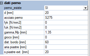 Nella gestione dei dati della piastra è presente anche la sezione che consente di definire le caratteristiche del perno: